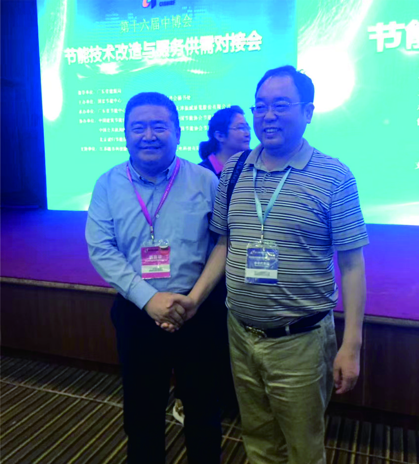 國(guó)家節(jié)能中心副主任史作廷和公司董事長(zhǎng)陳程合影并給予“好安節(jié)電”高度好評(píng)